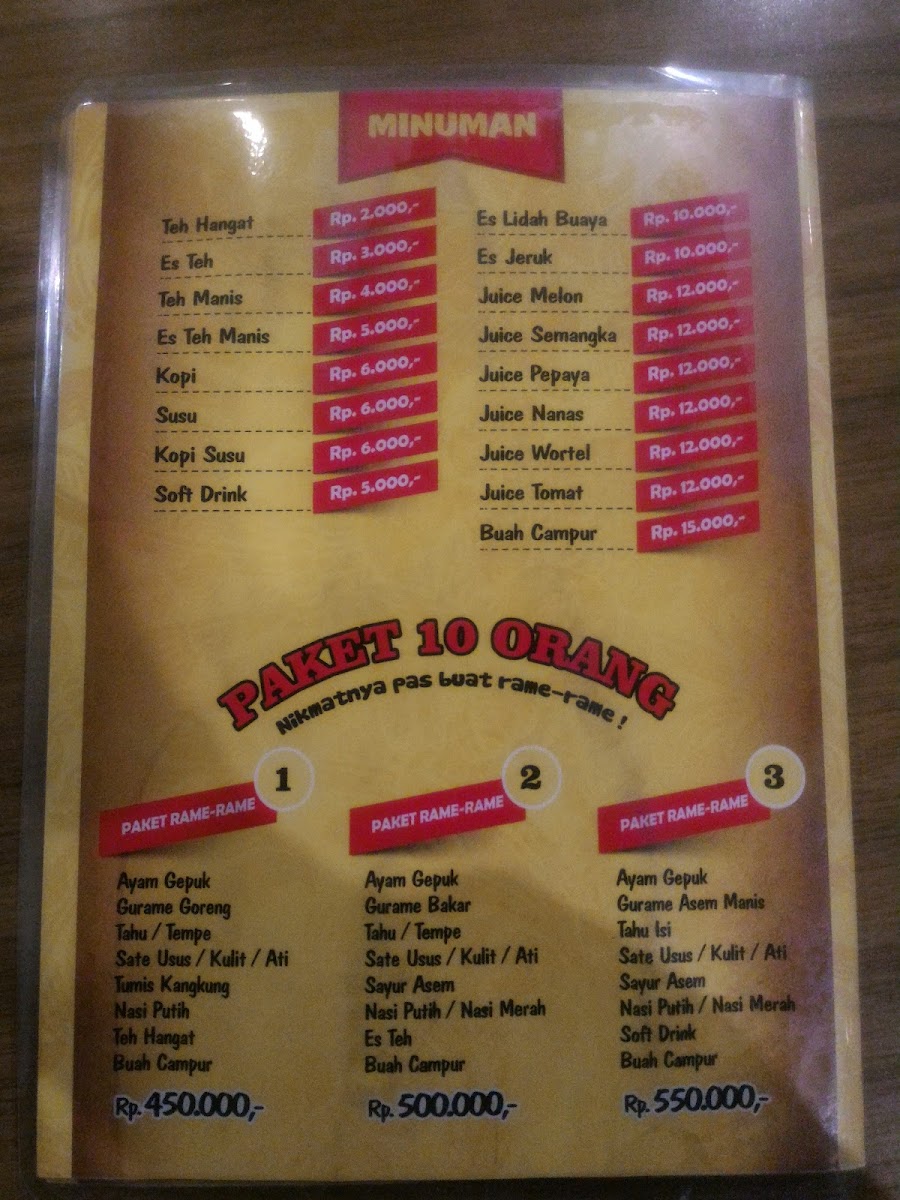 The menu also features a variety of cooking styles, ensuring every visit brings something new. Customers appreciate the affordable pricing, especially the “Hemat Package,” offering great value without compromising taste. Beyond the food, the spacious dining area and ample parking add to a comfortable experience, perfect for families and groups. With its vibrant flavors and welcoming atmosphere, Ayam Gepuk Pak Gembus is a fiery gem in Depok’s bustling food scene you’ll want to keep coming back to.